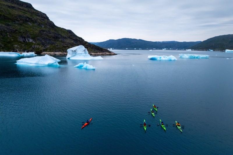 Sedm českých seakayakářů se v létě vydává do jižního Grónska, aby dopádlovali nádhernou krajinou až k ledovcovým splazům. Po cestě pozorují tuleně, užívají si táboření a vyhýbají se obrovitým krám. Nahlížejí do zátiší místních vesnic a byť jen na chvilku sdílejí zážitky s místními obyvateli.