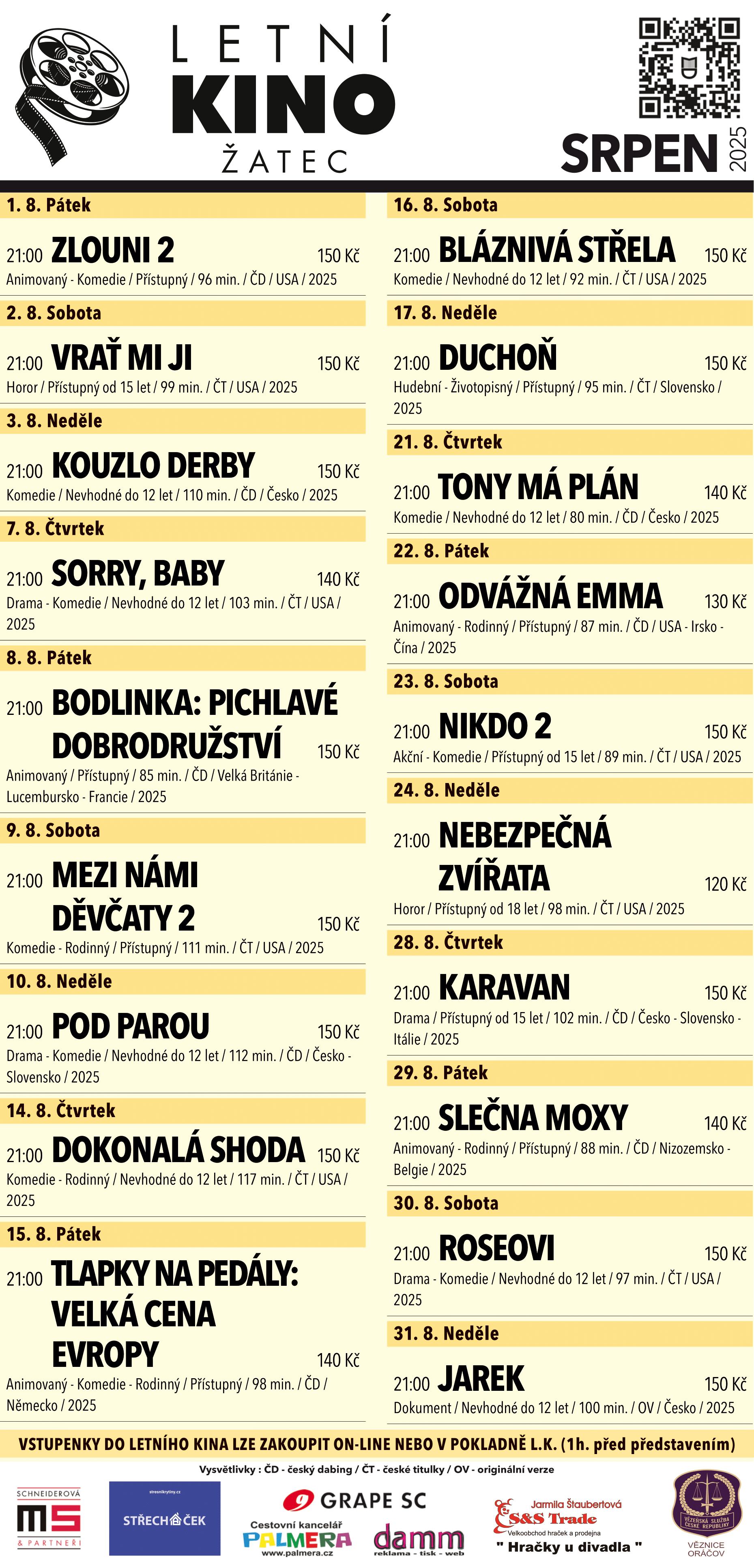 Program Letního kina srpen 2025 ke stažení ZDE.