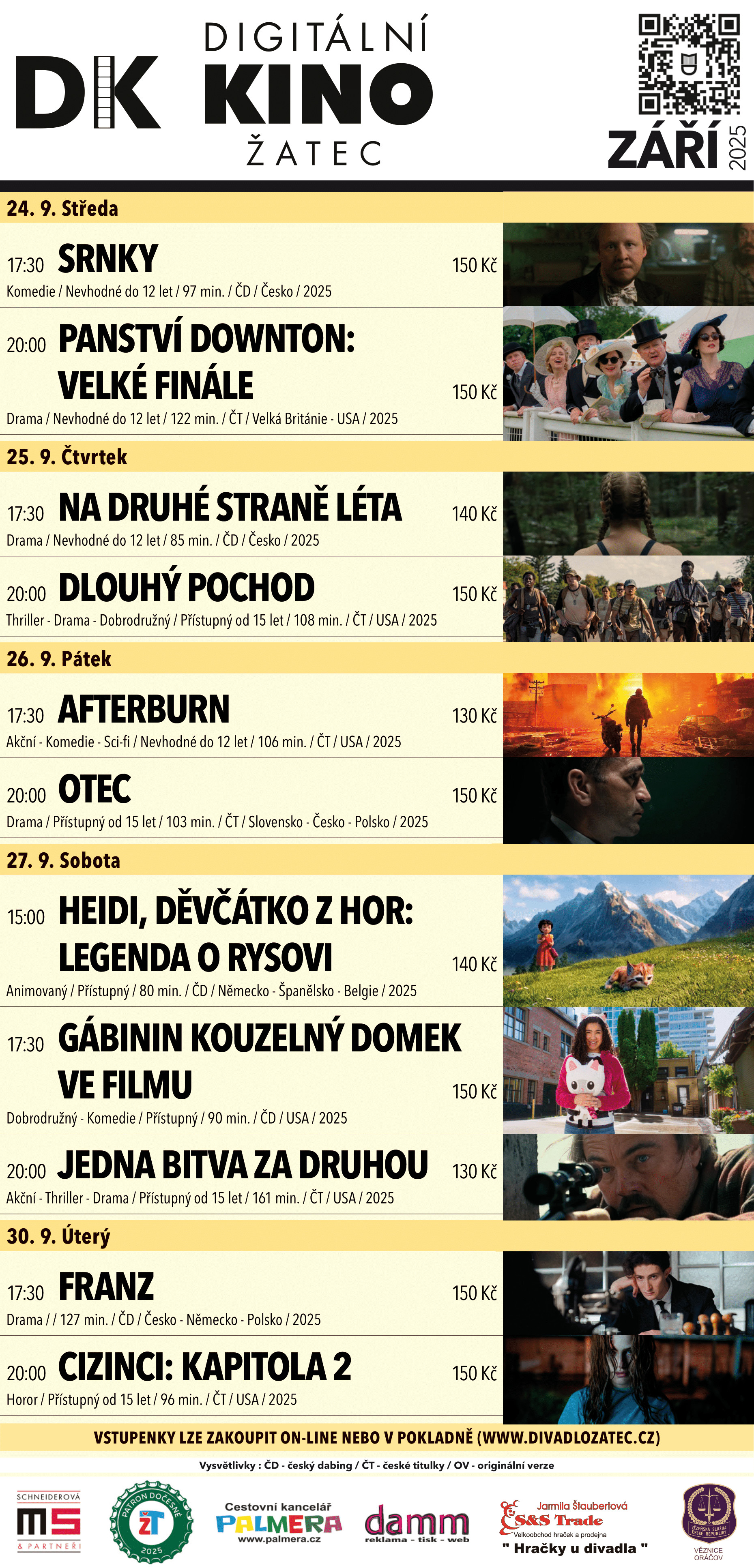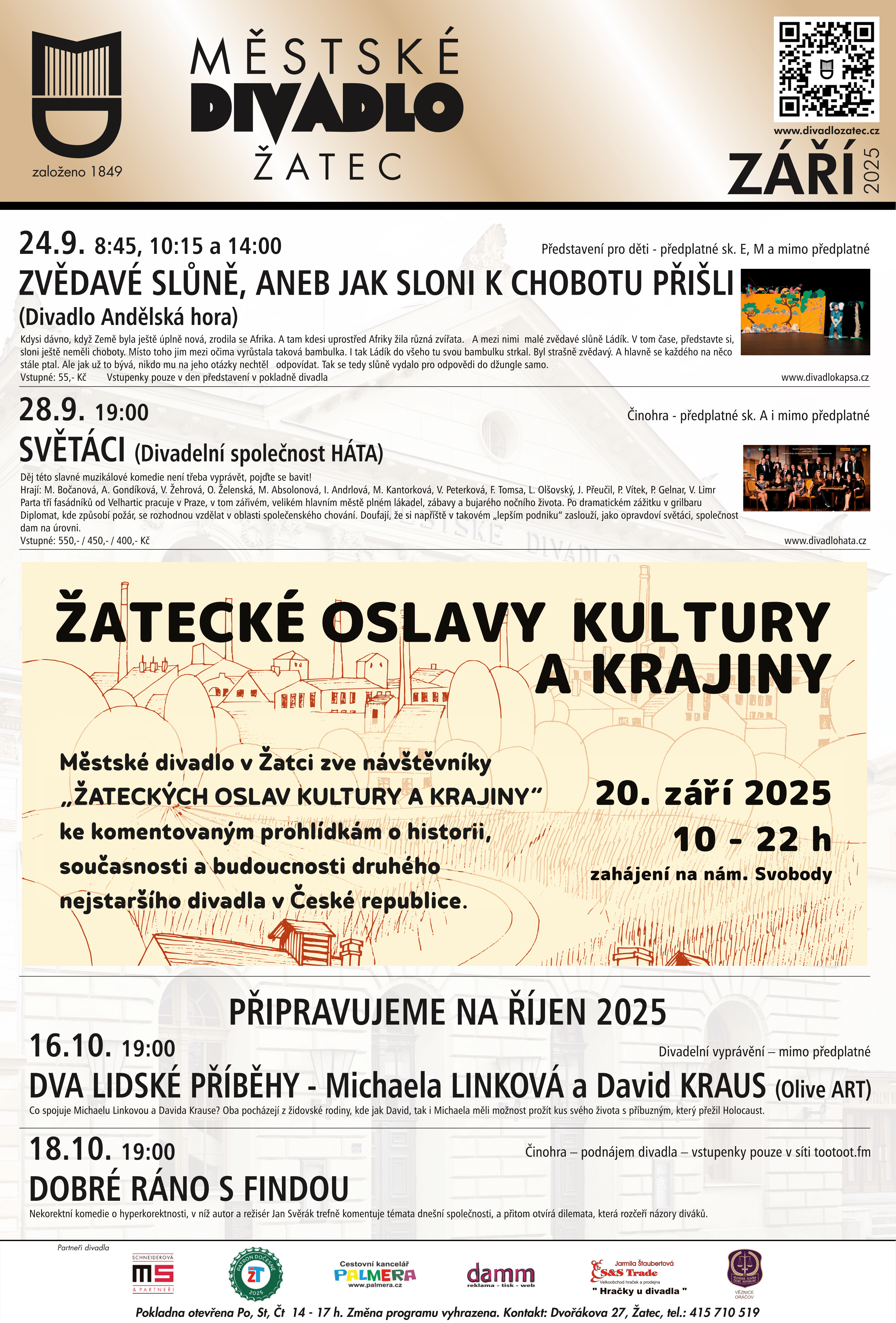 Program Městského divadla září 2025 ke stažení ZDE, program Digitálního kina ke stažení ZDE.