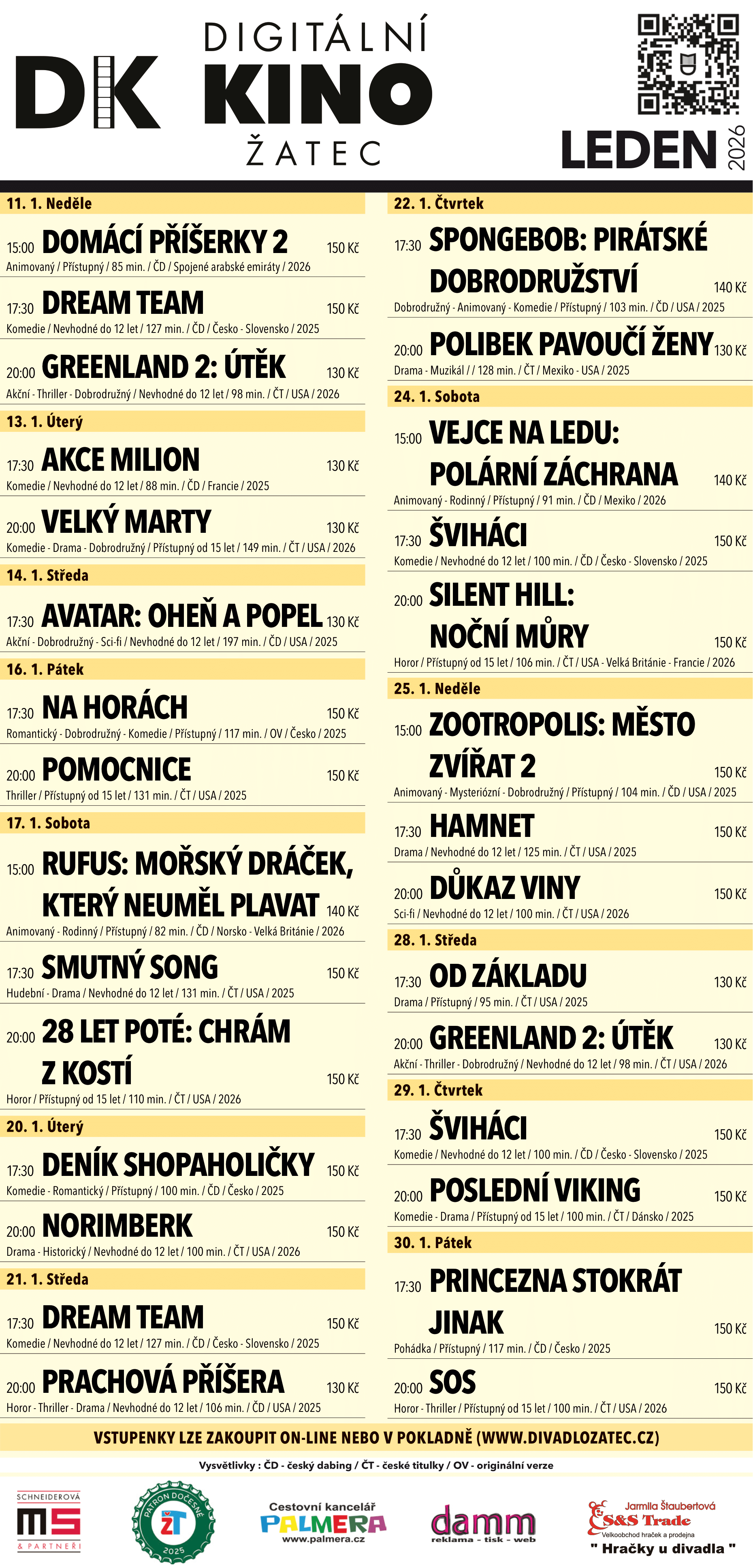 Program Městského divadla leden 2026 ke stažení ZDE, program Digitálního kina ke stažení ZDE.